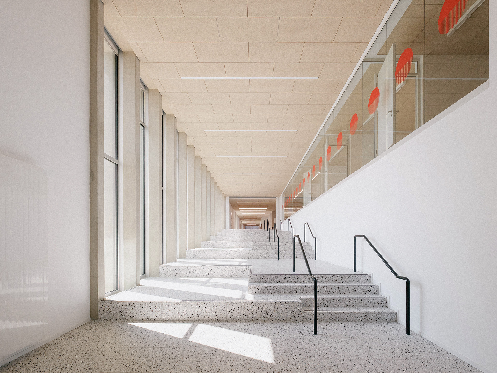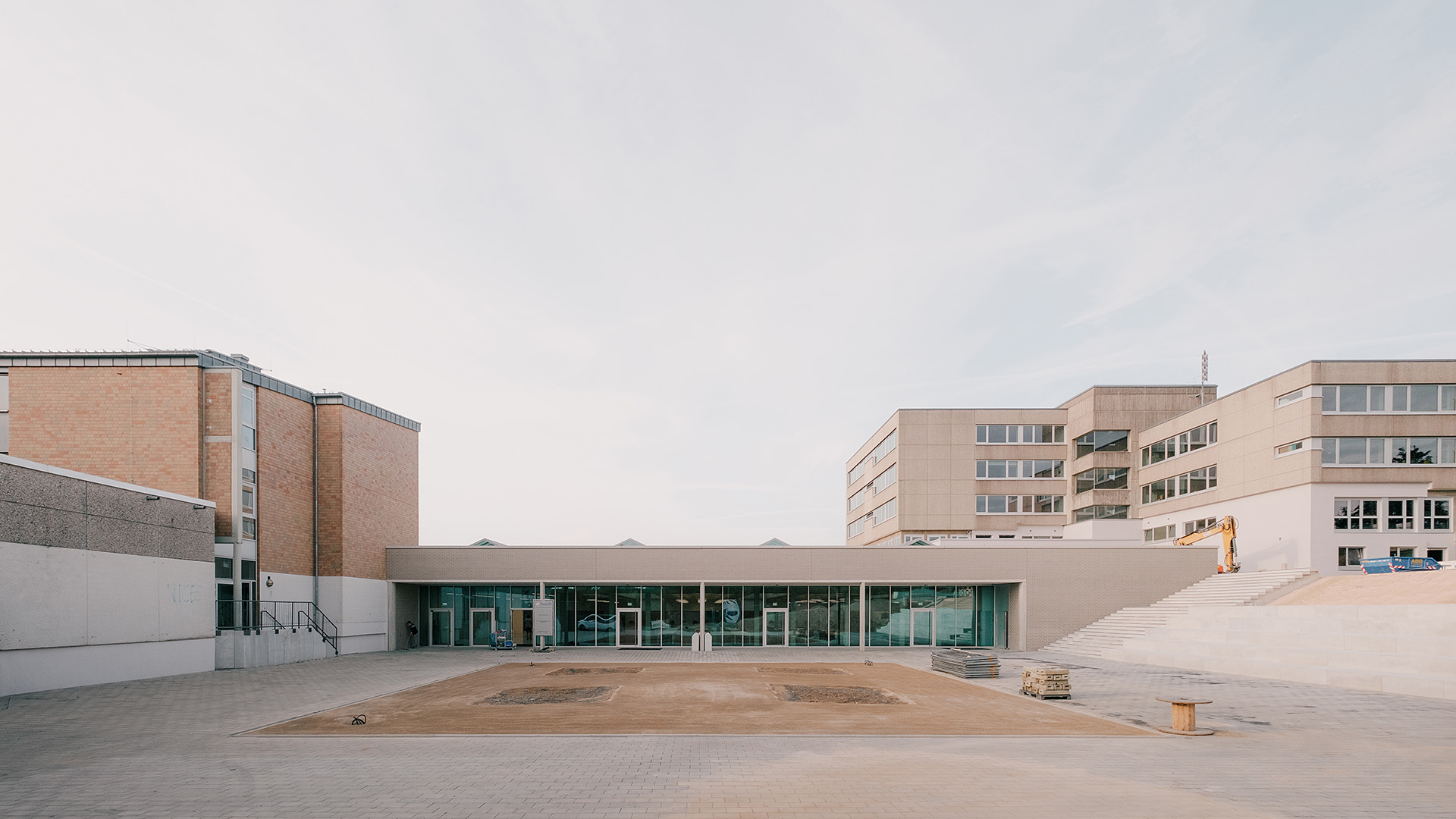 In der deutschen Kleinstadt Rösrath bei Köln-Bonn entsteht ein neues Schulzentrum mit Realschule und Gymnasium. Der bauhistorisch interessante Bestand aus den 60er - bis 80er Jahren wird behutsam adaptiert und formal vom Neubau aufgegriffen.