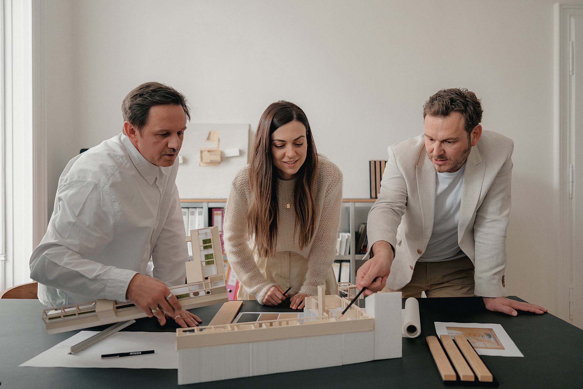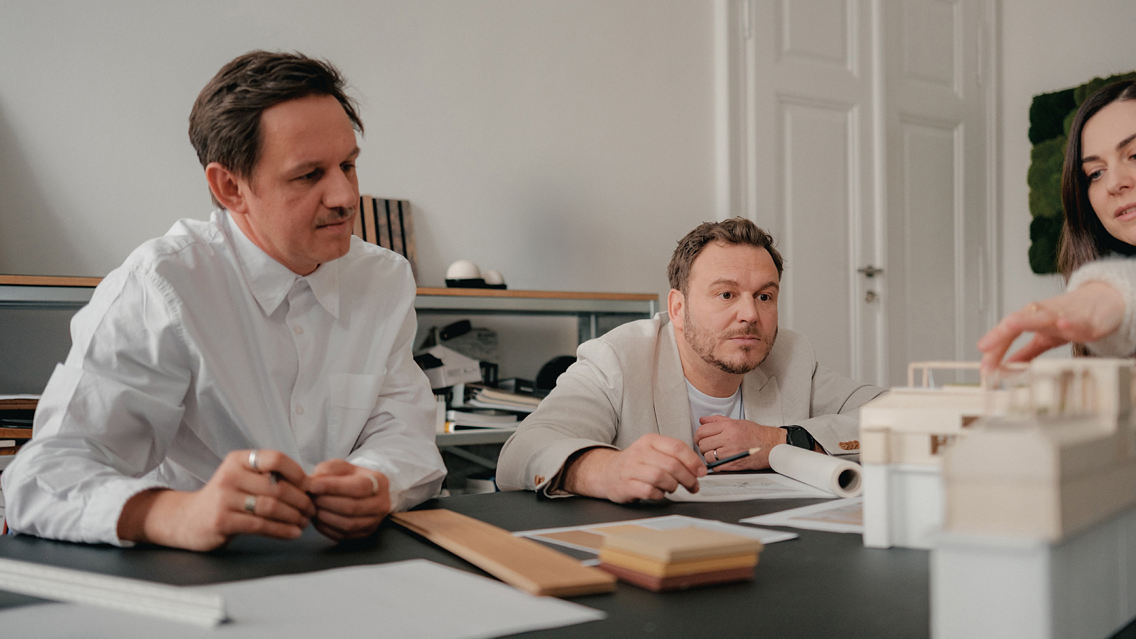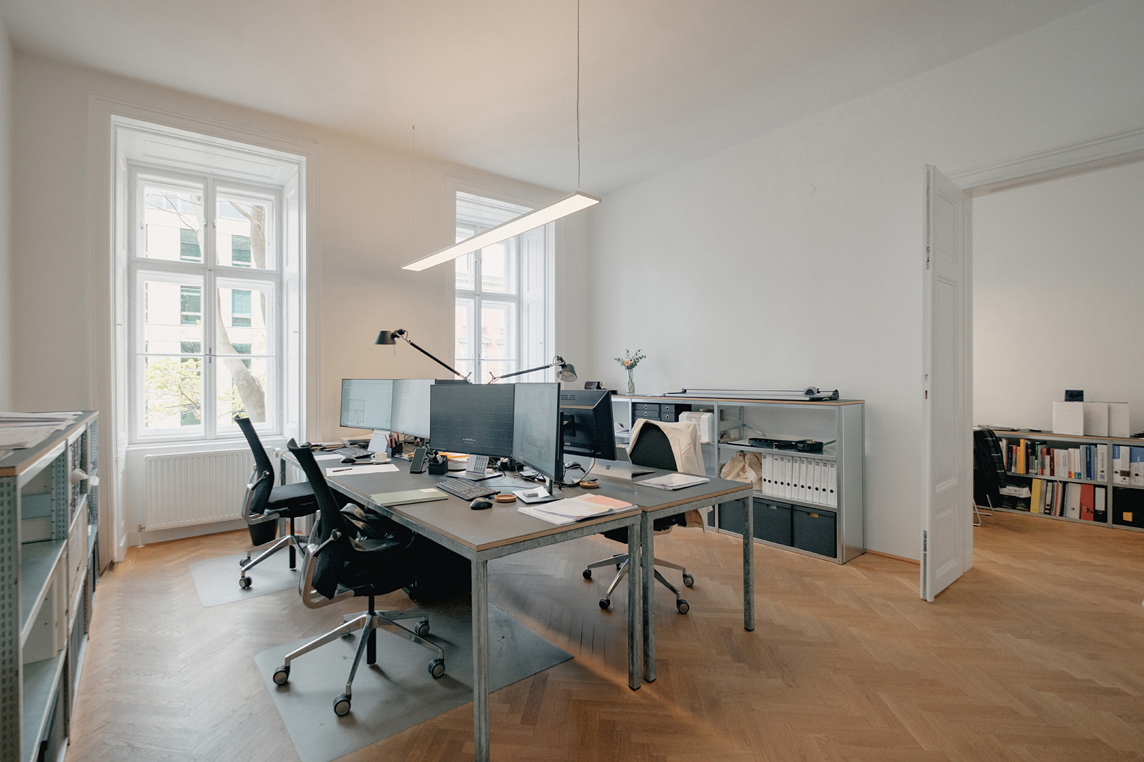 Für Wachter Architekten habe ich eine umfassende Fotoreportage realisiert, die das Büro in der Wiener Altstadt dokumentiert – von der Außenansicht über die Innenräume bis hin zum Team und Arbeitsalltag.