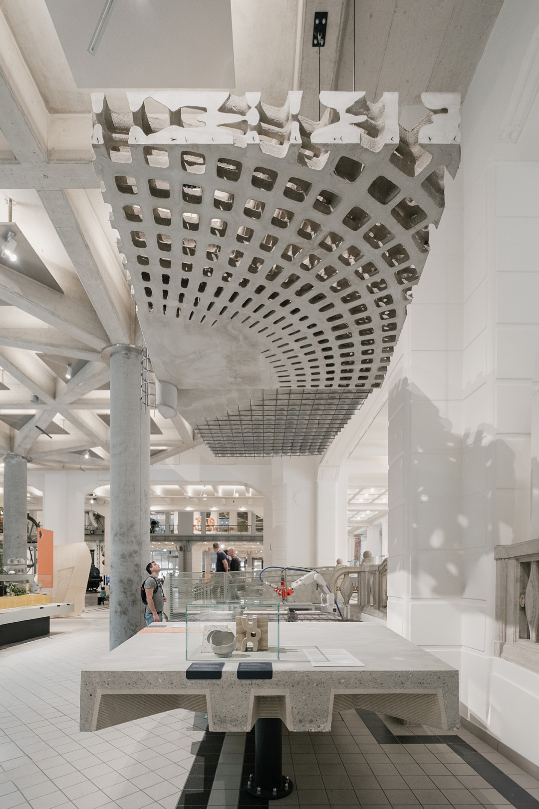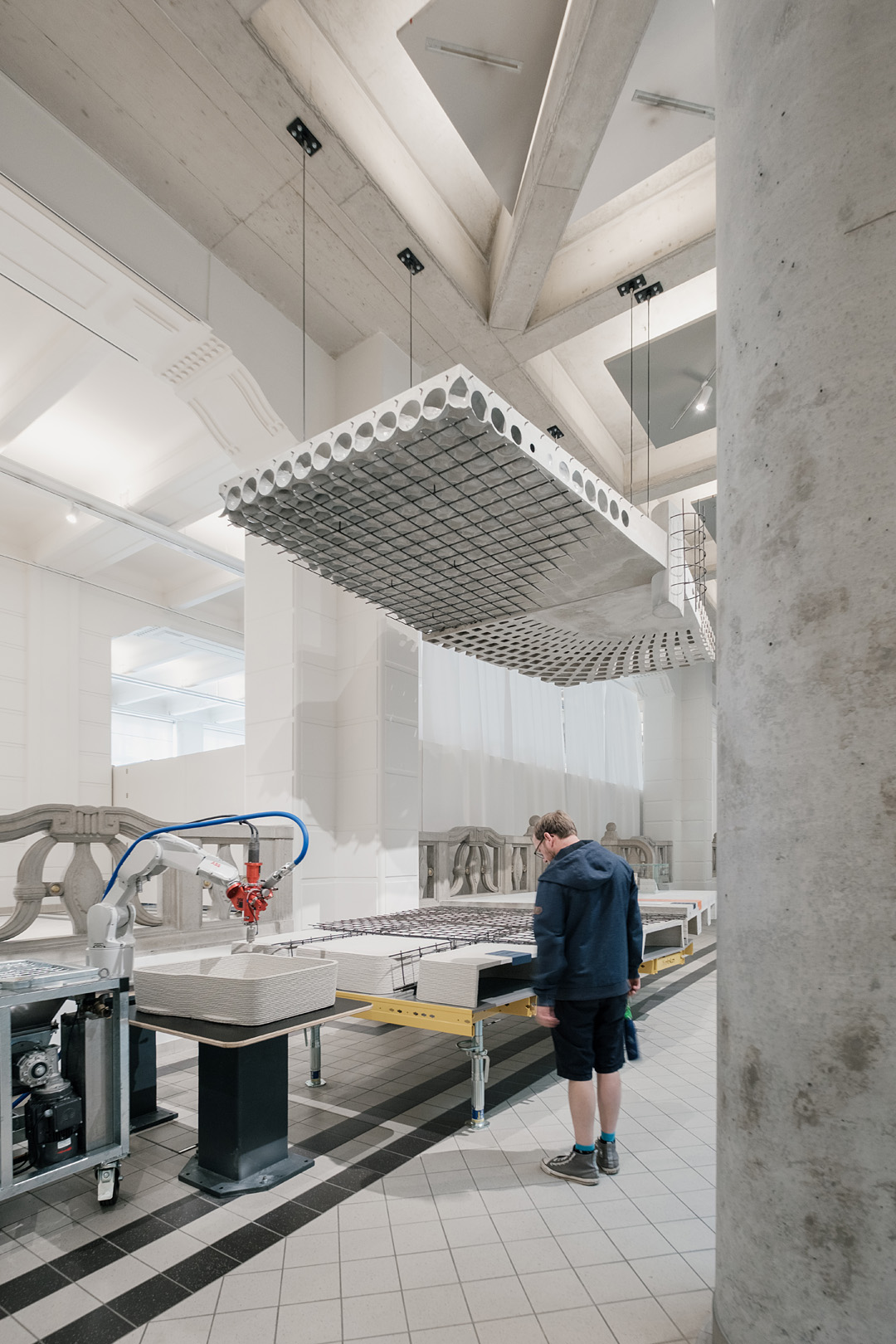Für Werner Sobek und das ILEK Stuttgart habe ich das Ausstellungsstück M212 im Technischen Museum Wien fotografiert – eine innovative Geschossdecke aus sogenanntem Gradientenbeton. Die 7,2 m breite Struktur demonstriert eindrucksvoll, wie sich durch gezielte Materialverteilung und den Einsatz 3D-gedruckter Hohlkörper das Eigengewicht um bis zu 50 % reduzieren lässt – bei gleichbleibender Tragfähigkeit. Die Aufnahmen zeigen das Potenzial zukunftsweisender Bauweisen im Kontext technischer Nachhaltigkeit und ästhetischer Präzision.